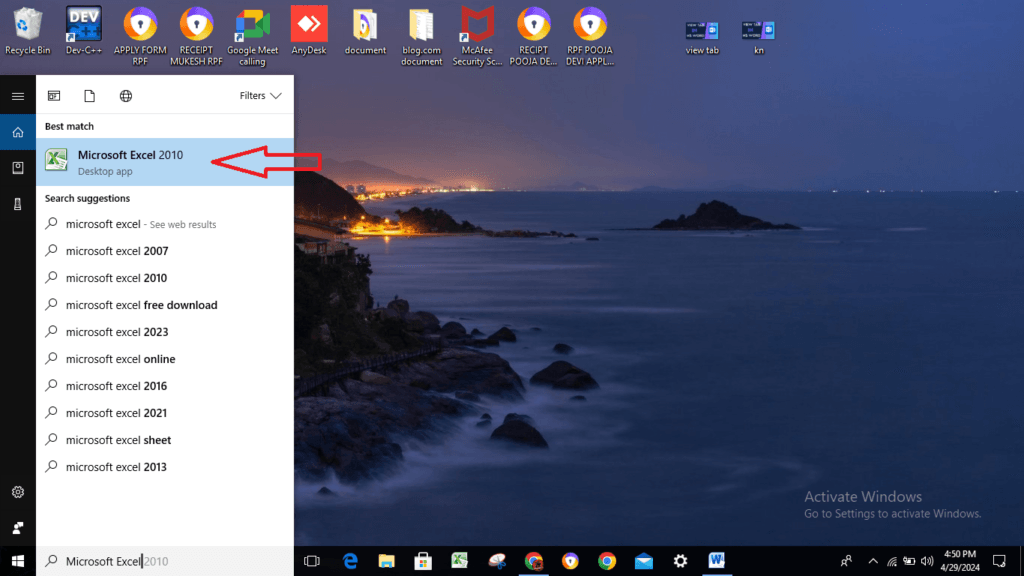 - Next step is to Type on search bar Microsoft Excel